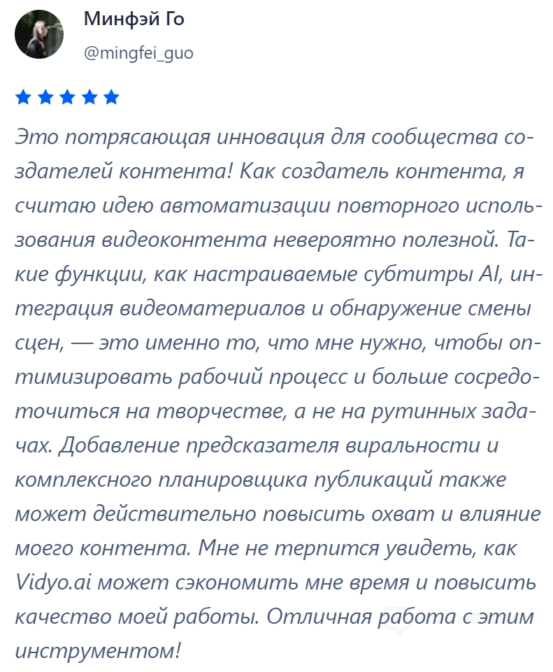 Пользователи ценят функцию интеллектуальной нарезки видео и автоматического добавления субтитров. Эти опции экономят время и упрощают создание профессиональных видеороликов.