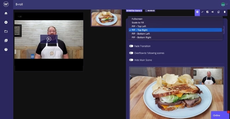 Как вставить наложенную сцену или закадровый ролик в Wisecut