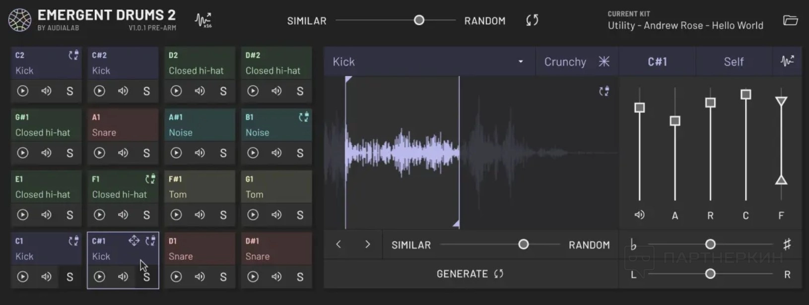 Это передовой плагин для драм-машины, способный генерировать бесконечное количество уникальных барабанных сэмплов. Emergent Drums основывается на системе искусственного интеллекта. ПО обучена на широком спектре существующих звуков и создает абсолютно новые и оригинальные сэмплы с нуля.