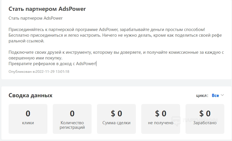 Стать участником партнерской программы может любой пользователь. Условия простые: за каждого привлеченного реферала пользователю будет получать по 10% комиссий от продаж продолжительностью до 24 месяцев. Там же будет отображено количество регистраций, кликов и заработанных на партнерке средств.