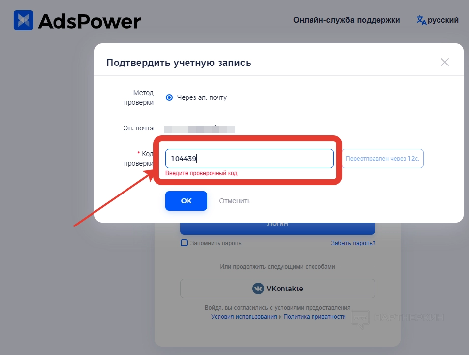 Когда пользователь нажмет на кнопку «Логин», на электронную почту или мобильный номер телефона отправится 6-значный код, который нужно будет ввести в указанную строку.