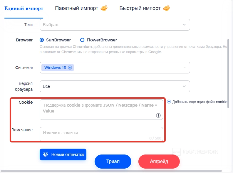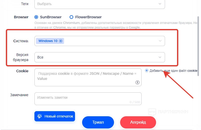 Далее идет строка для куки и замечаний. Если необходимо синхронизировать или обновлять куки-файлы на разных устройствах, в настройках браузера придется отключить функцию « Сохранять куки ». Что касается строки « Замечание », там можно оставлять полезные для себя заметки.