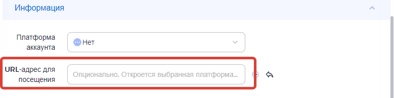 Если в списке нужно ресурса нет, опускаемся чуть ниже и в строку « URL-адрес для посещения » вводим адрес сайта.