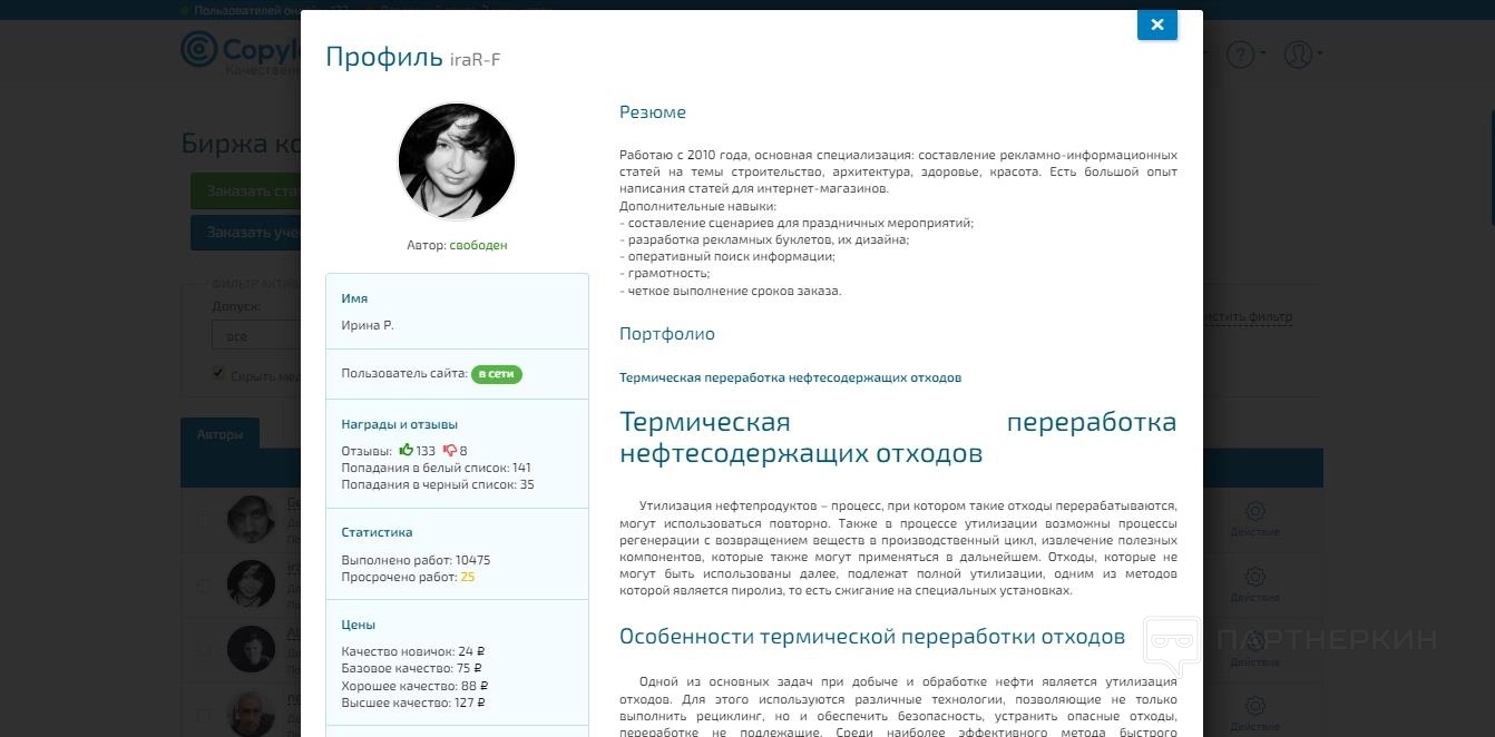 - Расчет рейтинга авторов. При расчете рейтинга учитываются отзывы разных клиентов. Например, если постоянный заказчик оставил 10 положительных отзывов, но 2 случайных написали негативный отклик, рейтинг будет отрицательным.