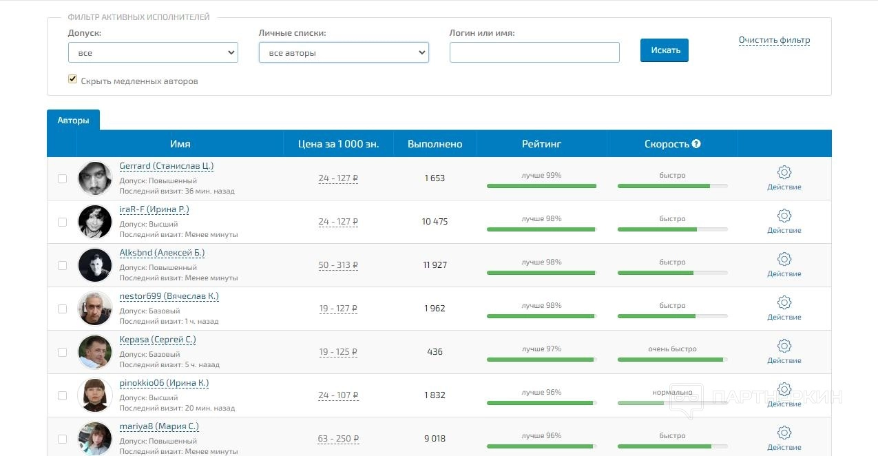 Вы можете напрямую сделать заказ определенному исполнителю без размещения заказа на сайте. Для этого в разделе «Биржа» выберите пункт «Лучшие авторы». Копирайтеров можно подбирать по фильтрам: