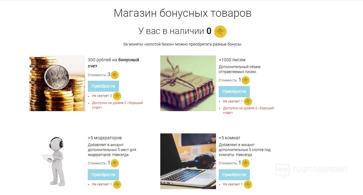 Помимо услуг, входящих в основной пакет, можно приобретать дополнительные функции в магазине бонусных товаров. Они приобретаются за внутреннюю валюту – монеты «бизоны». Их можно приобрести самостоятельно либо получить за выполнение заданий и повышения опыта.