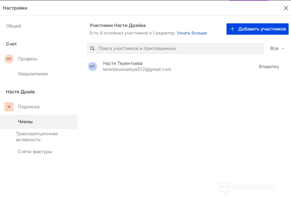 В разделе вы можете управлять участниками вашей команды, если вы работаете над проектами в