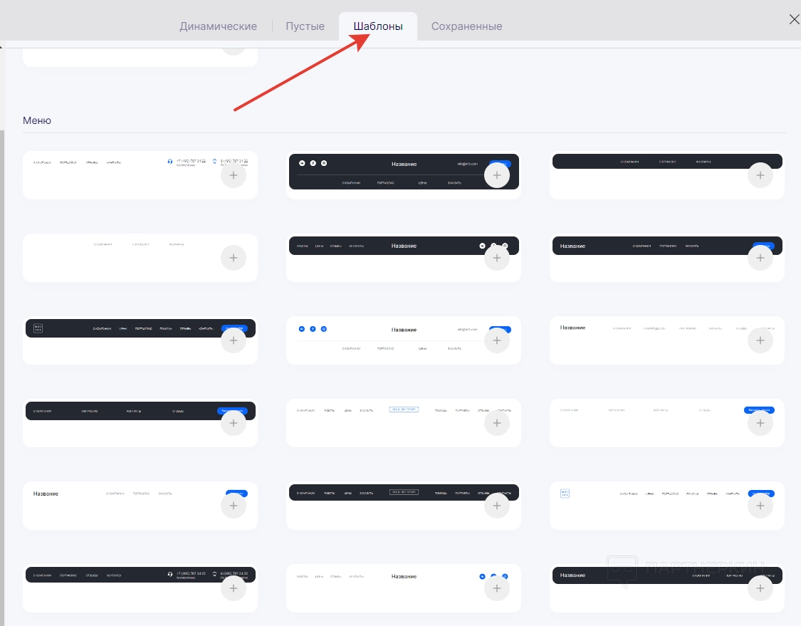 Когда вебмастер начнет разработку нового веб-ресурса, на странице загрузится каталог шаблонов, распределенных по следующим категориям: