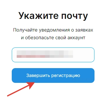 По завершении указываем электронную почту и кликаем на «Завершить регистрацию».