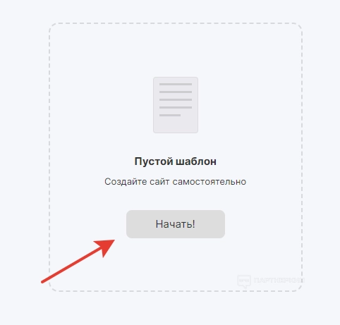 Если пользователь не хочет использовать шаблоны, можно создать сайт с нуля. Для этого нужно кликнуть на кнопку «Начать», которая расположена под пустым шаблоном. На примере пустого шаблона и рассмотрим последовательность разработки сайта.