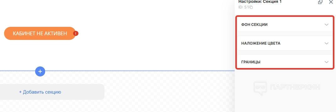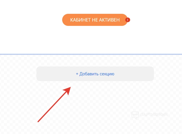 Кроме блоков можно добавлять секции. Для этого под добавленным блоком пользователь найдет кнопку «Добавить секцию».