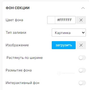 - выбрать тип заливки (пустой фон, картинка, видео, слайдер, карта);