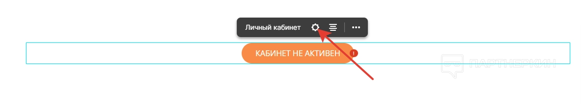 Теперь приступаем к настройке текстовой составляющей. Чтобы вызвать меню настроек, достаточно левой кнопкой мышки кликнуть на любое место в блоке, где есть текст или кнопка. Далее всплывает строка, где нужно кликнуть на шестеренку.