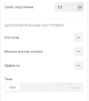 Также в этой вкладке есть дополнительные настройки, где можно регулировать отступы, размеры иконки внутри кнопки, эффекты и масштаб тени.