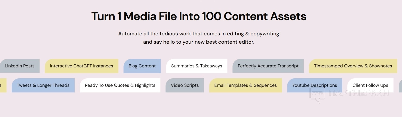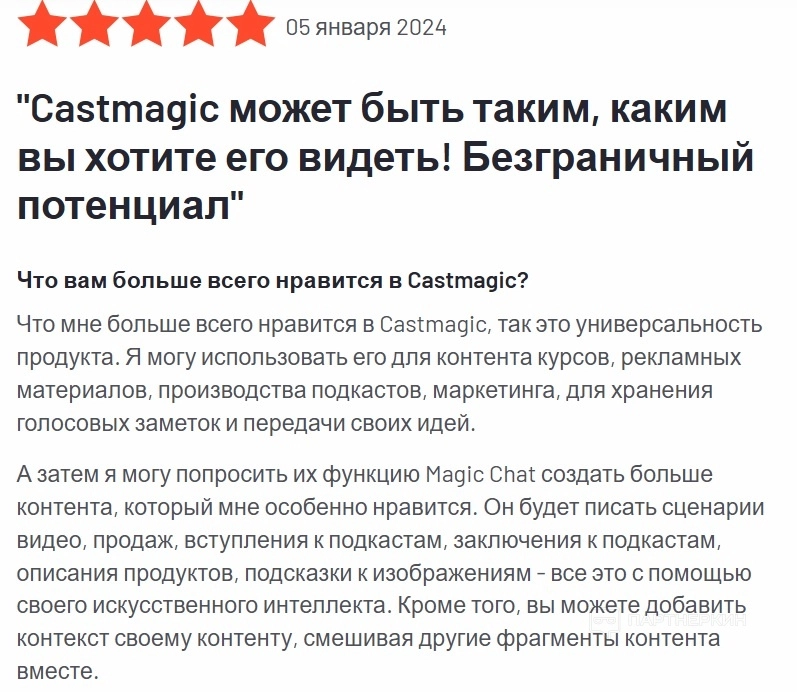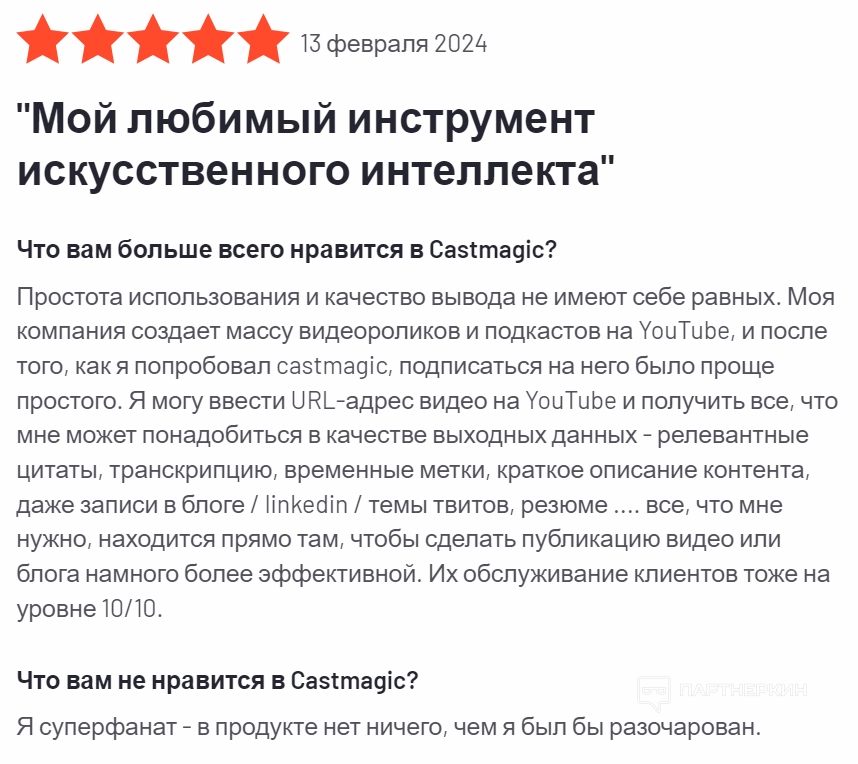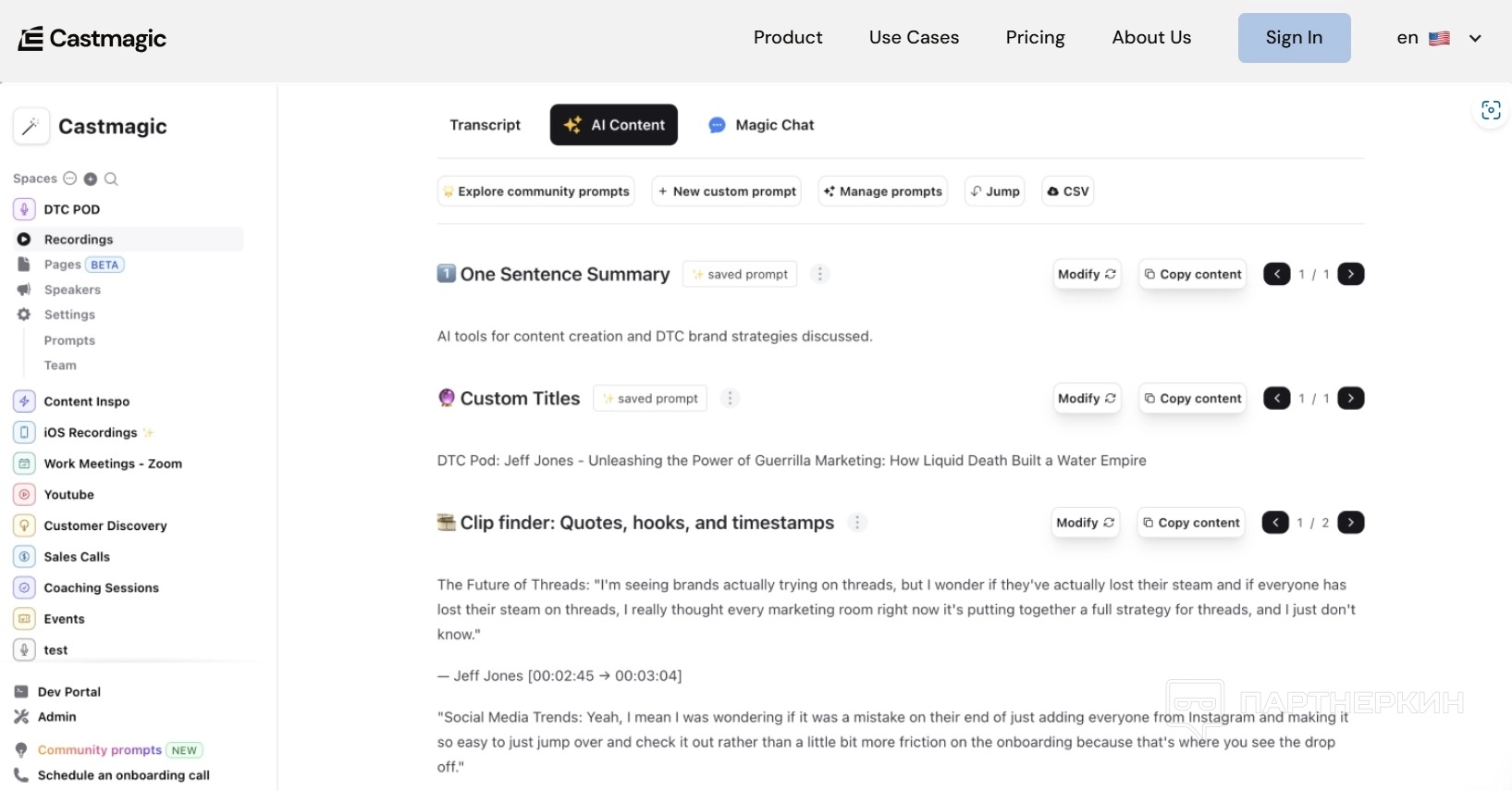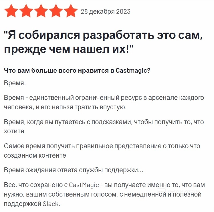 - Контент с искусственным интеллектом. Castmagic генерирует контент с искусственным интеллектом. Пользователь может настроить результат в соответствии с личными потребностями.