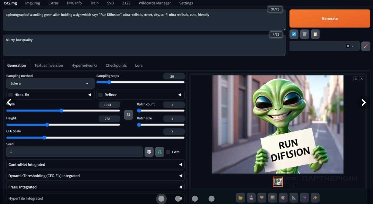 - простота обучения и отличный старт для освоения Stable Diffusion;