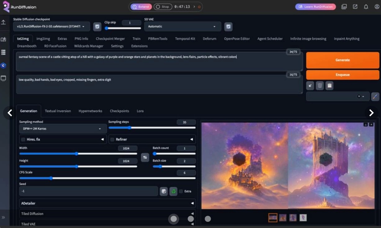 RunDiffusion.com, позволяет ускорить вывод на 100% с использованием передовой технологии искусственного интеллекта от Nvidia;