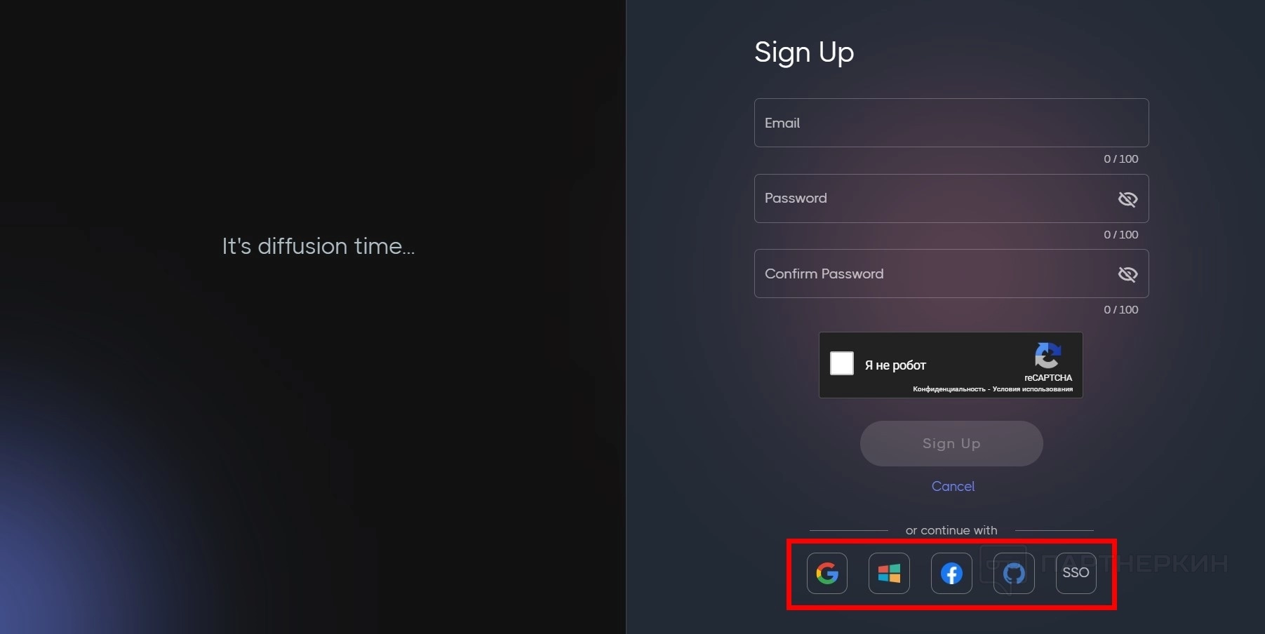 Также платформа предоставляет возможность зарегистрироваться через сторонние платформы. Например, Google, GitHub, Discord и так далее.