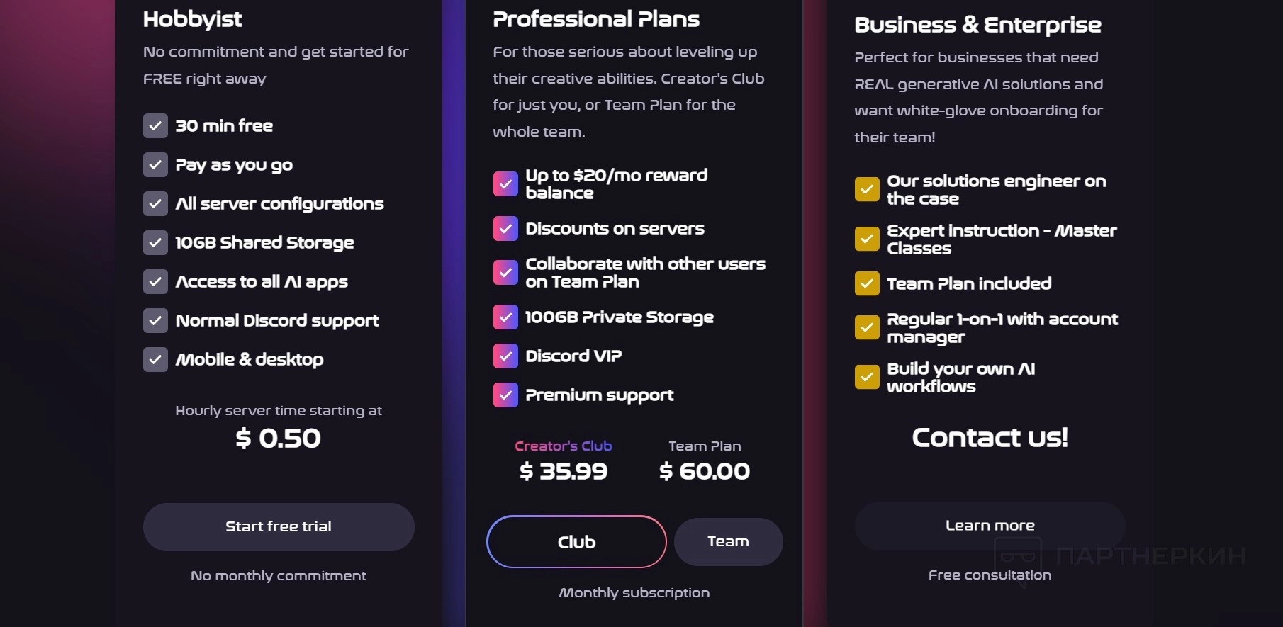Каждый тарифный план предлагает уникальные возможности, подходящие для различных потребностей пользователей — от индивидуальных хобби до корпоративных решений.