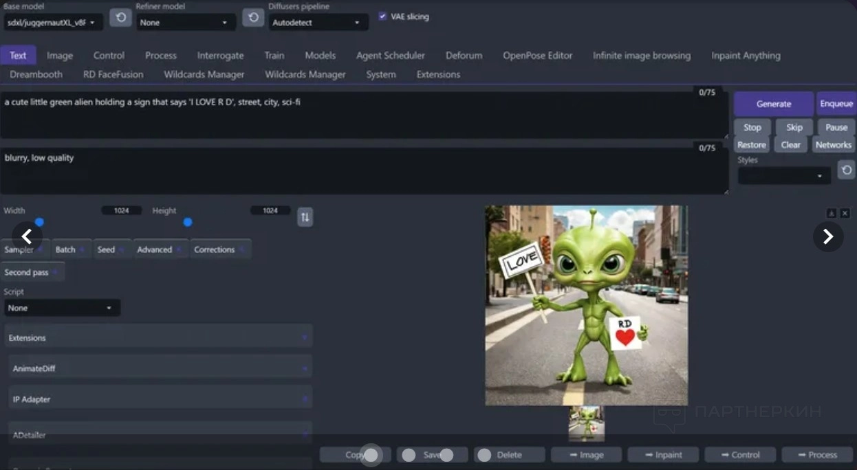 - поддержка множества диффузионных моделей: Stable Diffusion 1.5, 2.x, SD-XL и даже Kandinsky;