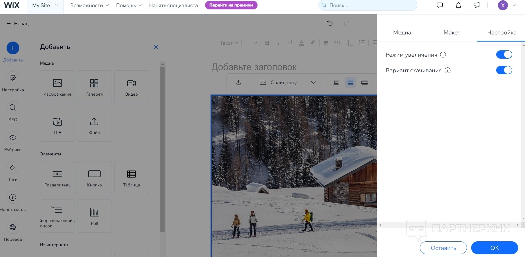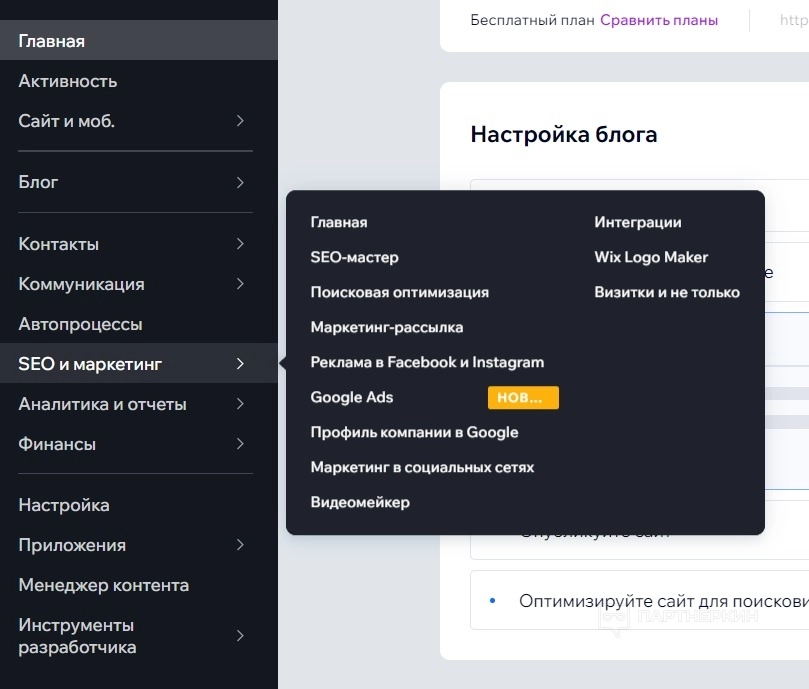 Преимущества блога на Wix — возможность бесплатного использования в течение неограниченного времени. Если бесплатного функционала не хватает, блогер может перейти на платный тариф.