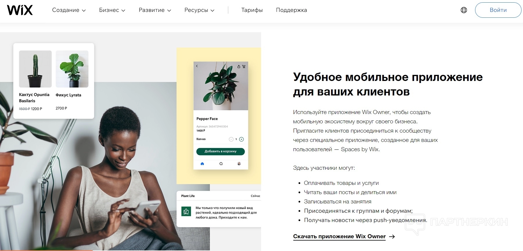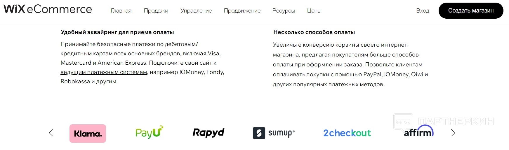 Участники партнерской программы получают маркетинговые материалы, баннеры для продвижения Wix и вознаграждение за пользователей, которые покупают премиум-тарифы. Выплаты — до $100 за каждого нового платного пользователя. Партнер может привлечь сколько угодно рефералов.