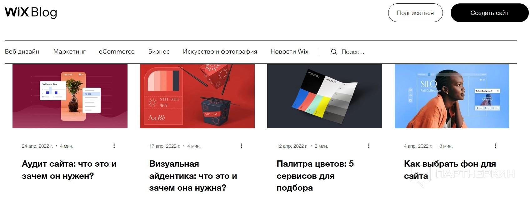 Компания Wix заинтересована в развитии знаний своих клиентов и грамотной стратегии контент-маркетинга. Wix ведет экспертный блог, бесплатный и доступный для всех интернет-пользователей. Регулярно публикуются полезные материалы о создании сайтов, трендах, практические руководства, примеры для вдохновения, лучшие практики. Блог доступен на русском и английском языках.