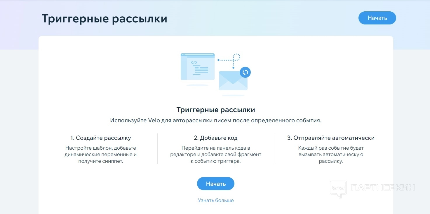 Отдельно есть партнерская программа для инструмента разработки Velo. Разработчик имеет возможность зарабатывать баллы за каждый клиентский проект, который он создает с помощью Velo. Партнерство дает право доступа к эксклюзивным преимуществам: подбор лидов на Wix Marketplace, получение партнерского вознаграждения.