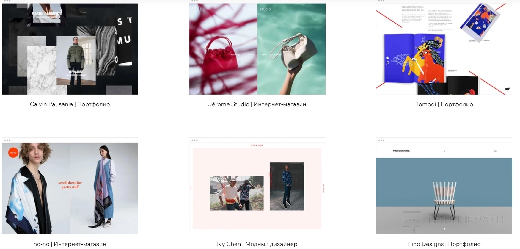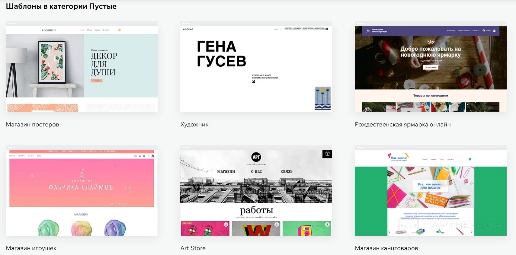 Можно выбрать пустой шаблон, похожий на Zero Block в Tilda. Это удобная возможность для дизайнеров, которые хотят создать принципиально уникальный сайт. Брать идеи можно в разделе с примерами сайтов клиентов Wix. На каждом сайте из примеров всплывает подсказка, какой шаблон был взят за основу.