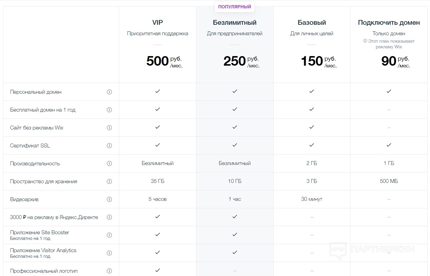 - Платные тарифные планы дорогие по сравнению с размещением сайта на традиционном веб-хостинге и CMS: минимальный — от 10 евро в месяц. На минимальном и бесплатном тарифе на страницах не убирается логотип Wix, есть ограничения места на диске.