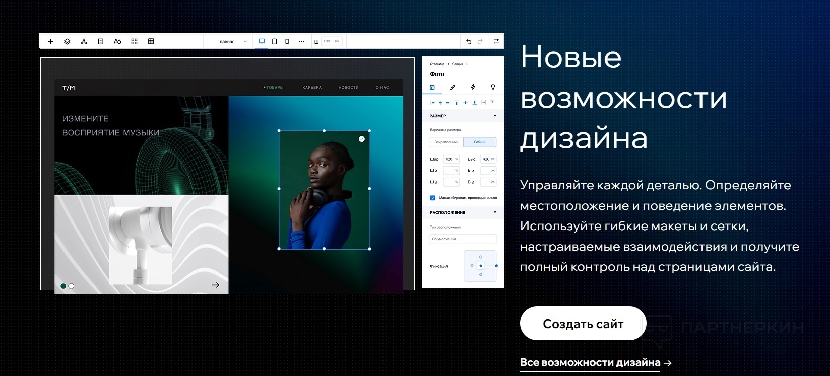 Wix позволяет создавать сложные сайты с нестандартной графикой. Платформа обладает гибкими настройками, предлагает современный дизайн, дает возможность добавлять любые функции. С Wix можно создать сайт любого типа: