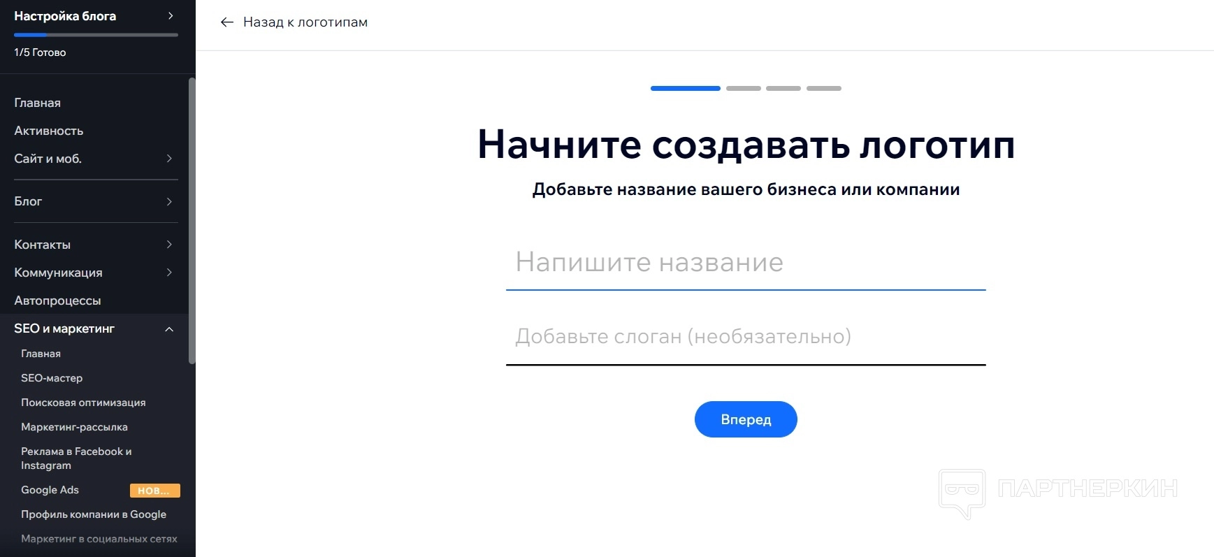 Чтобы создать свой первый сайт после регистрации, понадобится пройти шаги: