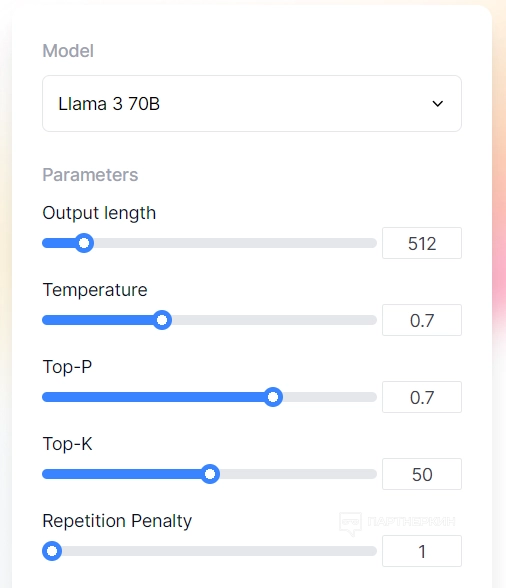 - Repetition Penalty — этот параметр используется для снижения вероятности повторения одинаковых фраз или слов в сгенерированном тексте. Значение выше 1 увеличивает штраф за повторение, что помогает создать более естественный и разнообразный текст. Это особенно полезно для долгих текстов, где повторения могут стать проблемой.
