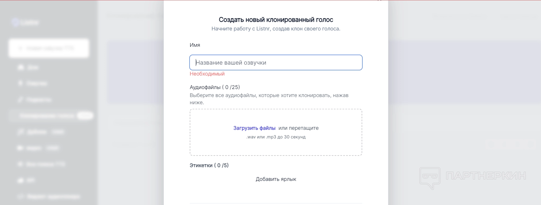 В этом разделе вы можете записать свой голос, который затем будет использован для создания его клона. Это дает возможность создавать озвучки и подкасты, используя собственный уникальный голос. Процесс записи простой и быстрый: следуйте инструкциям на экране, чтобы записать несколько образцов вашего голоса, и система автоматически создаст его цифровую копию.