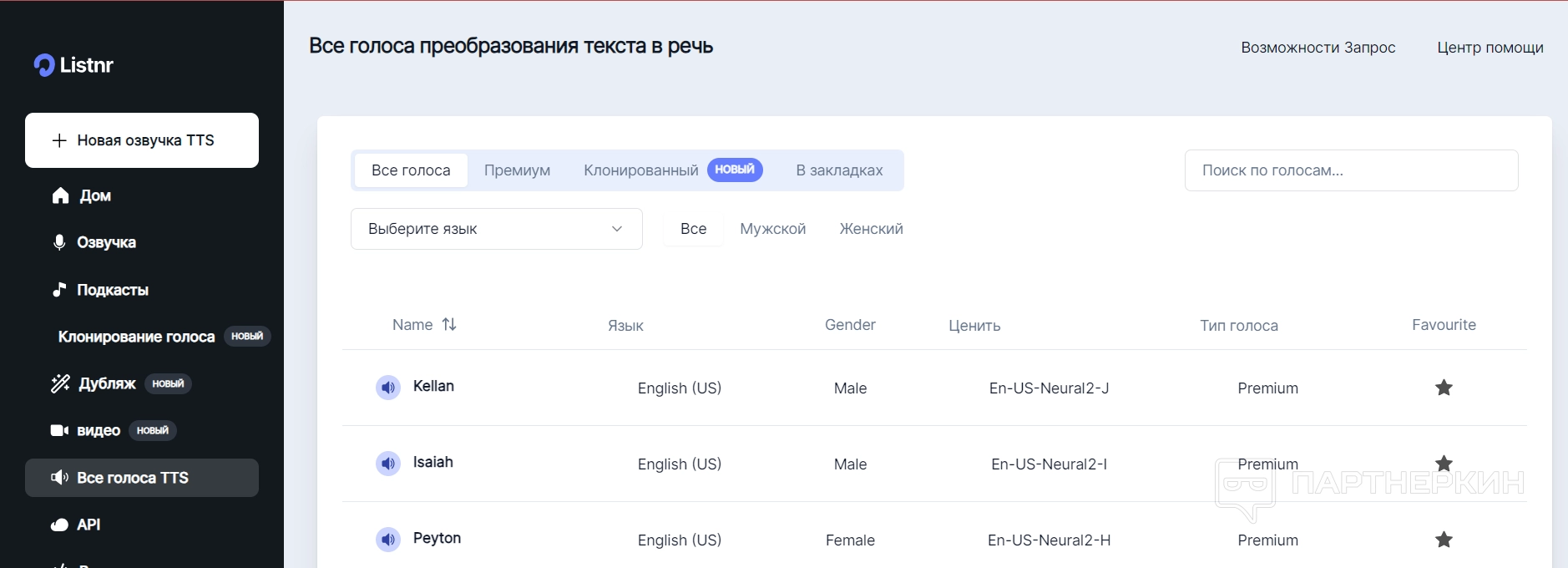 Тарифы Listnr