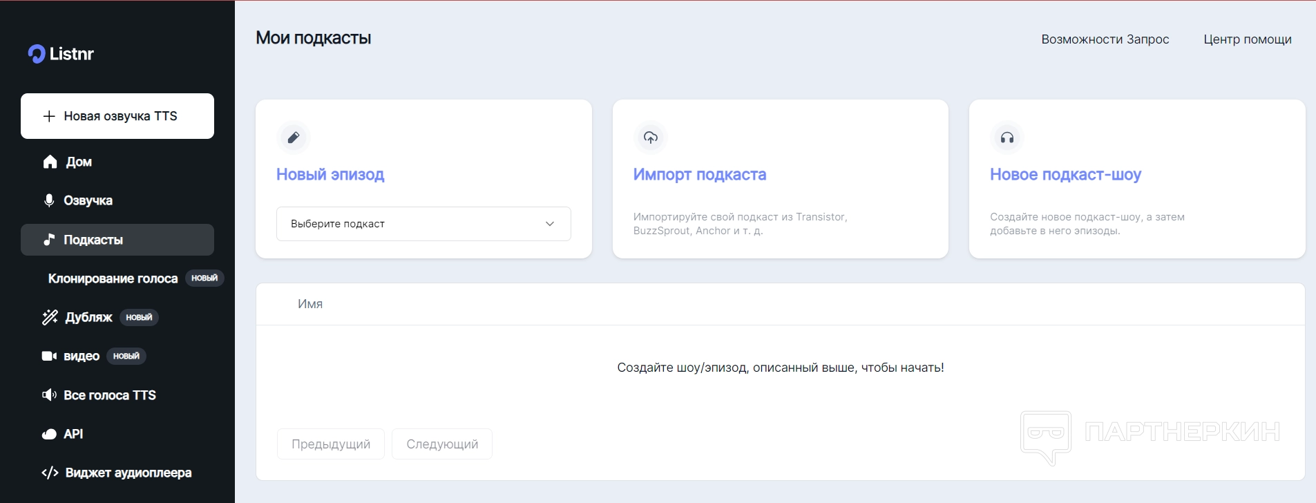 - Создание нового подкаста – начните с нуля, используя текст или клон своего голоса.