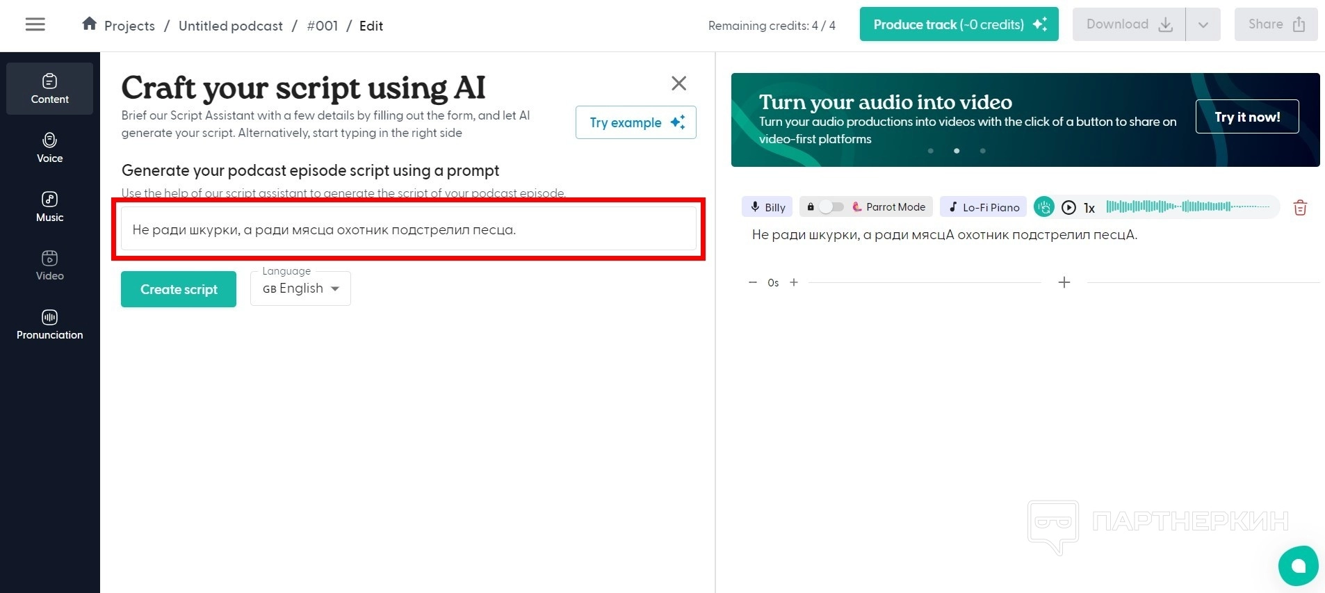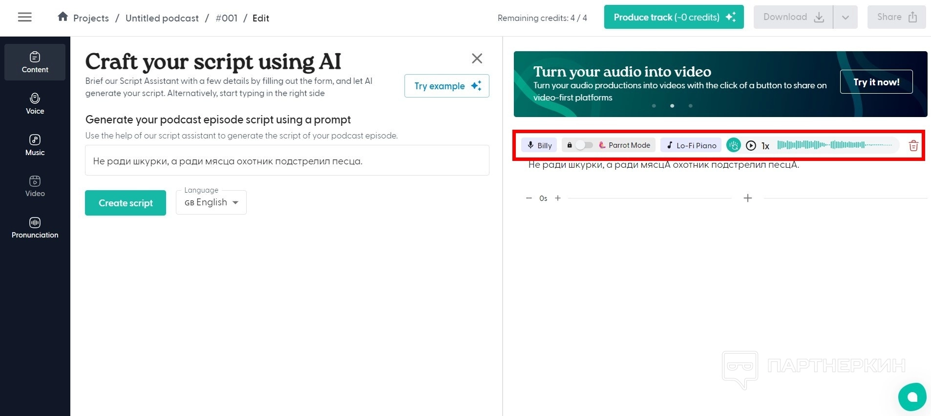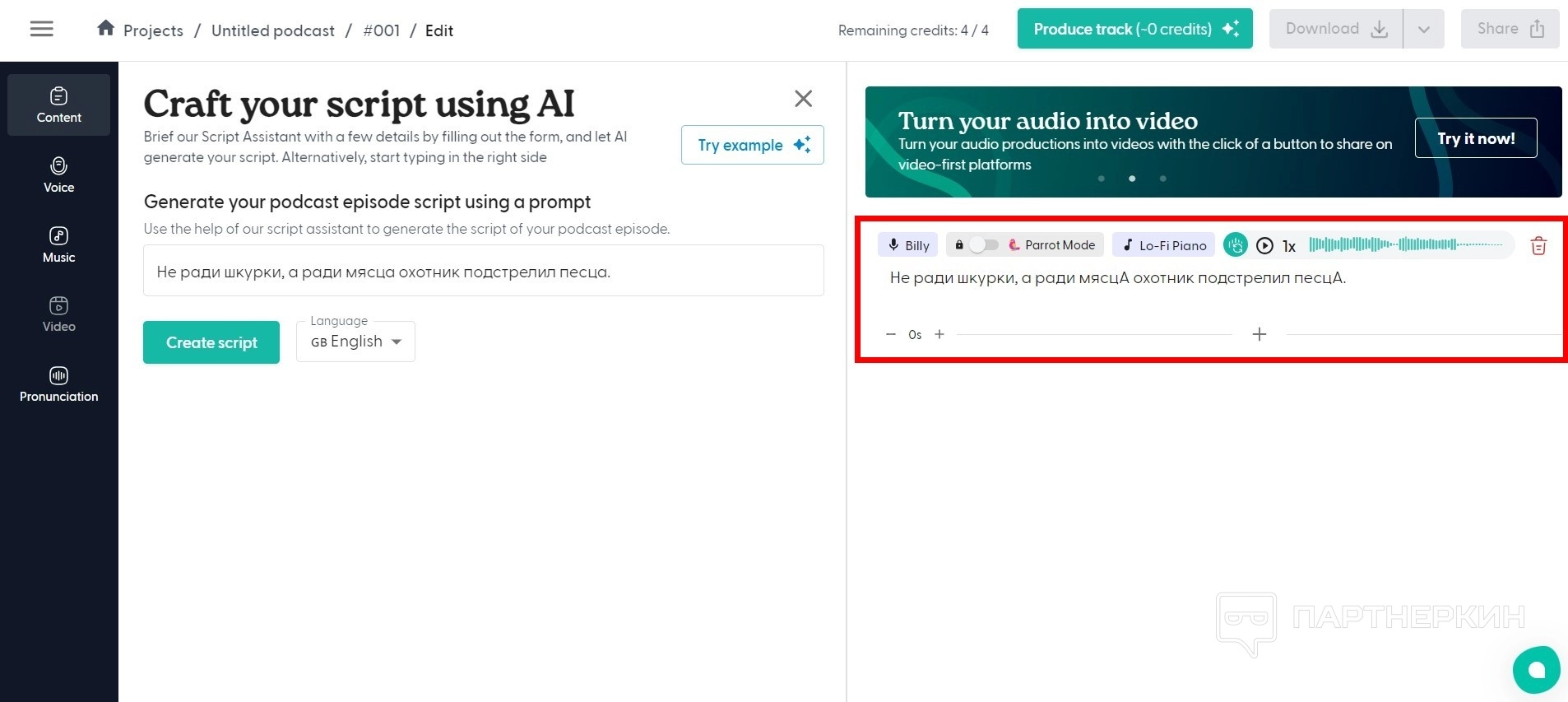Это самый простой шаблон для новичков. Инструмент дает возможность создавать простые подкасты на основе текста.
