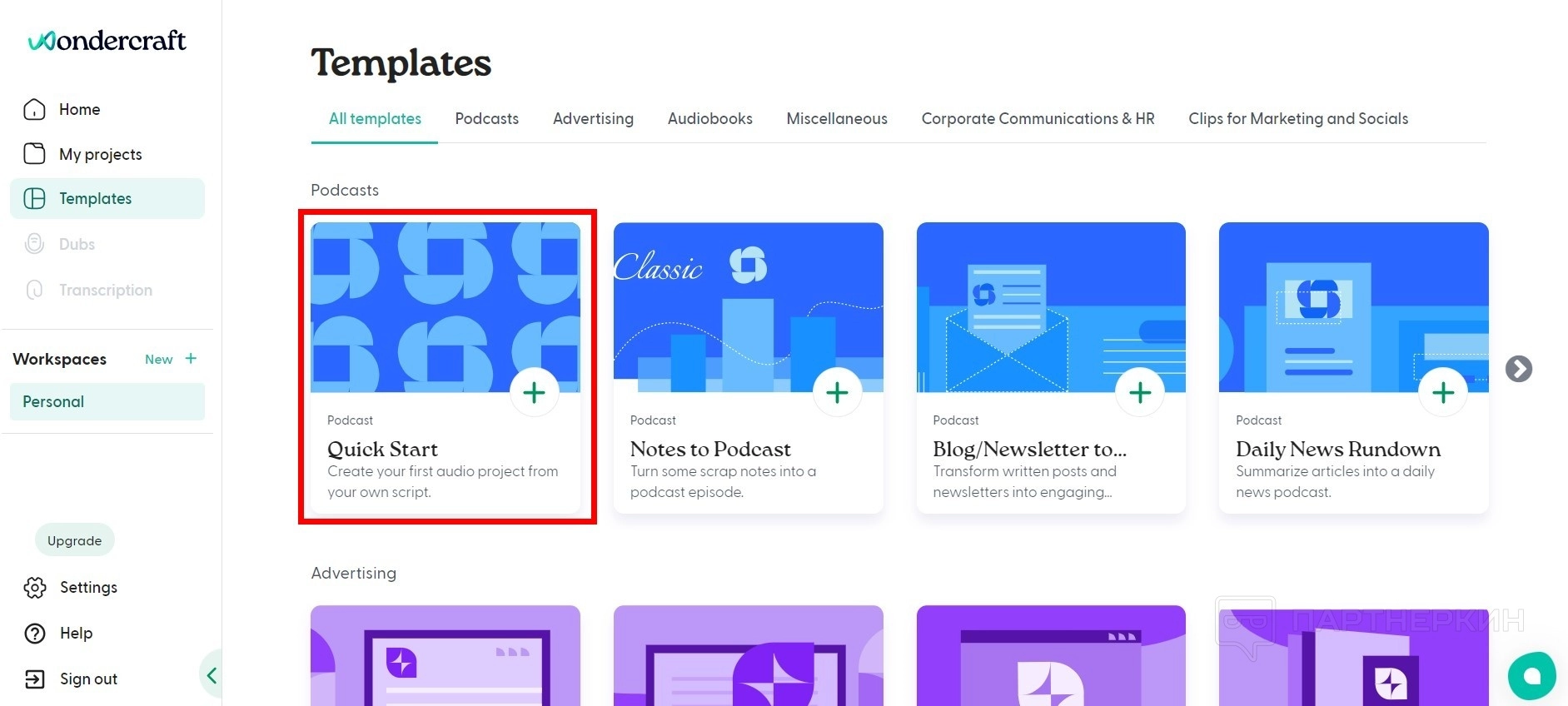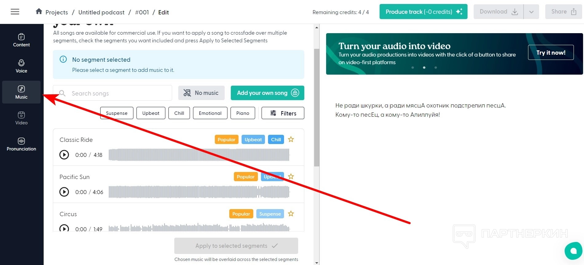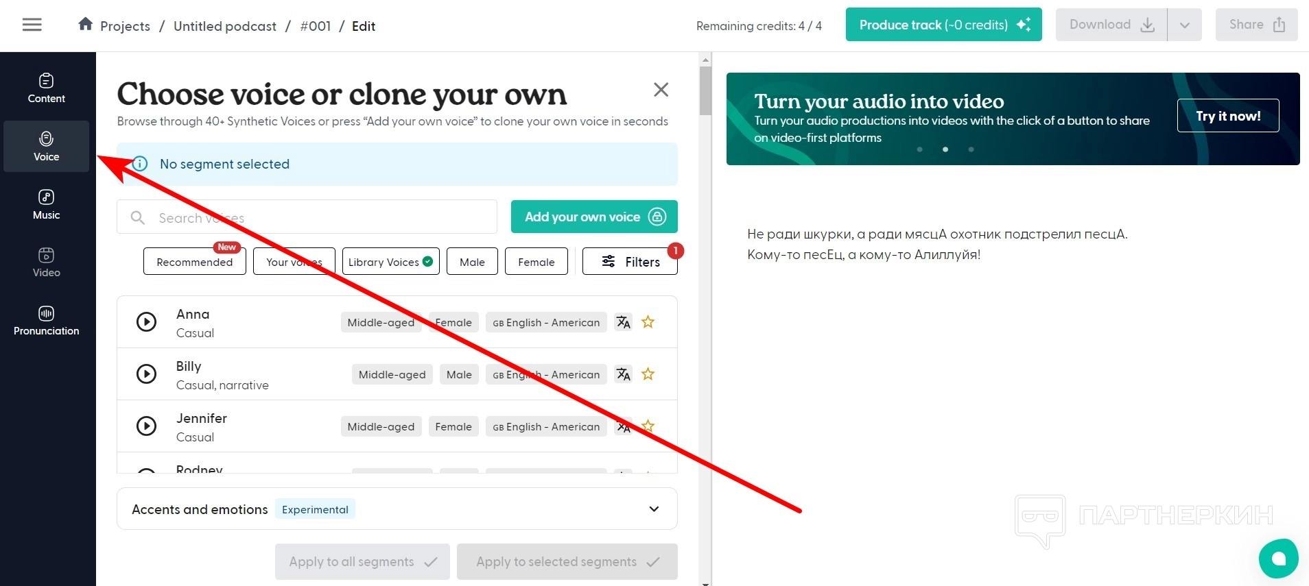 Это самый простой шаблон для новичков. Инструмент дает возможность создавать простые подкасты на основе текста.