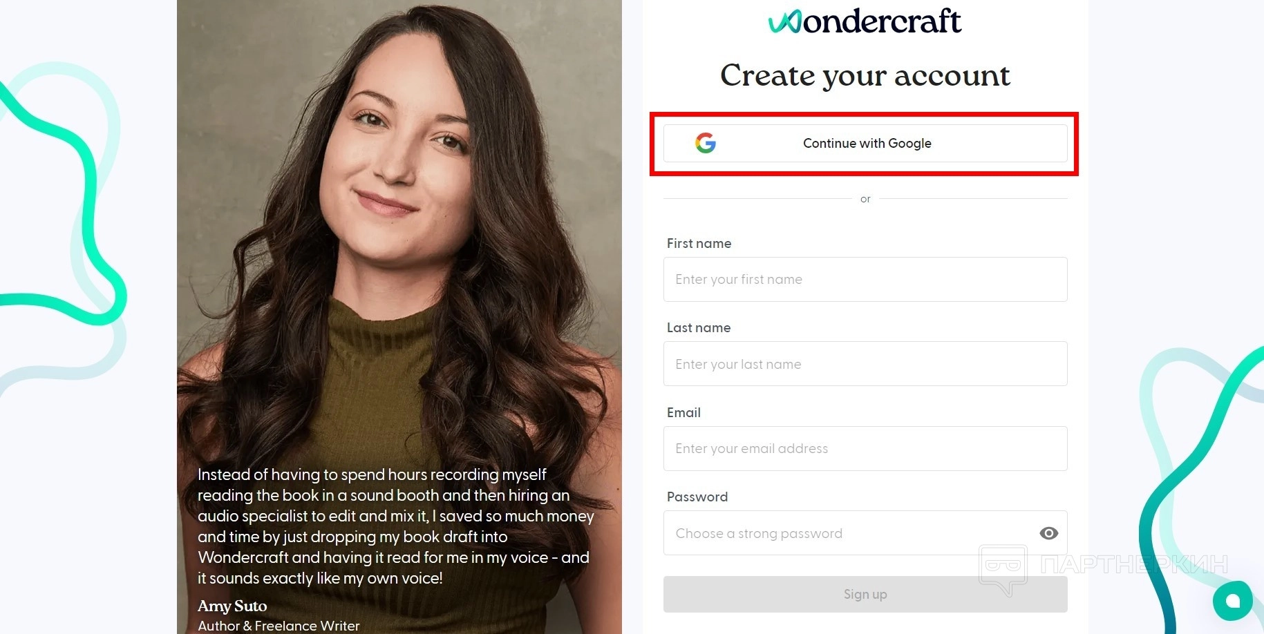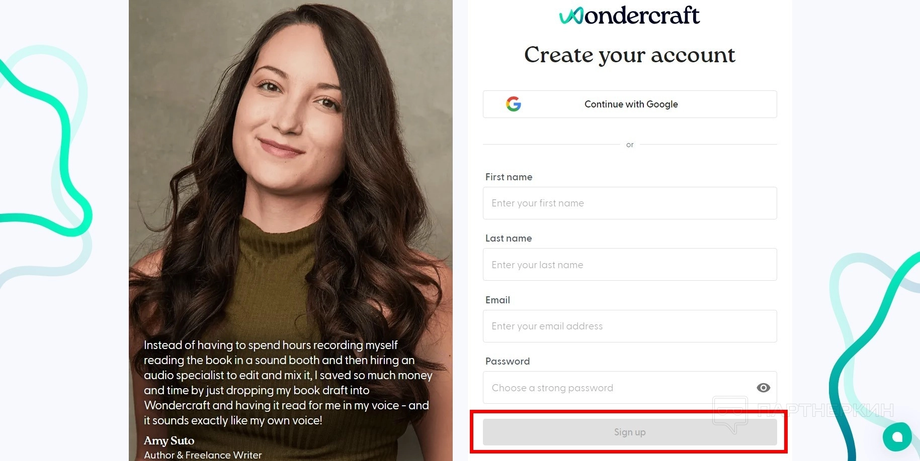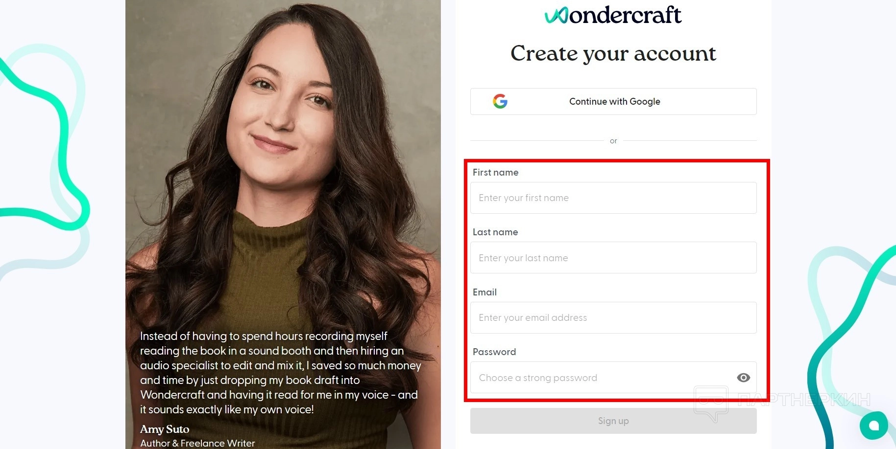 1. Заполните форму: укажите ваши имя, фамилию, email. Придумайте пароль.
