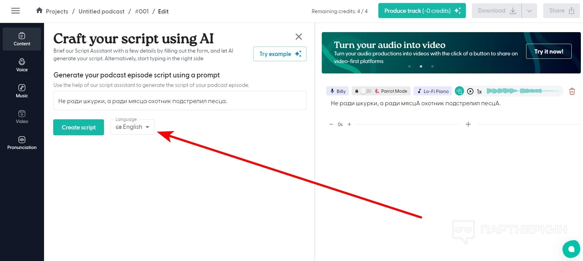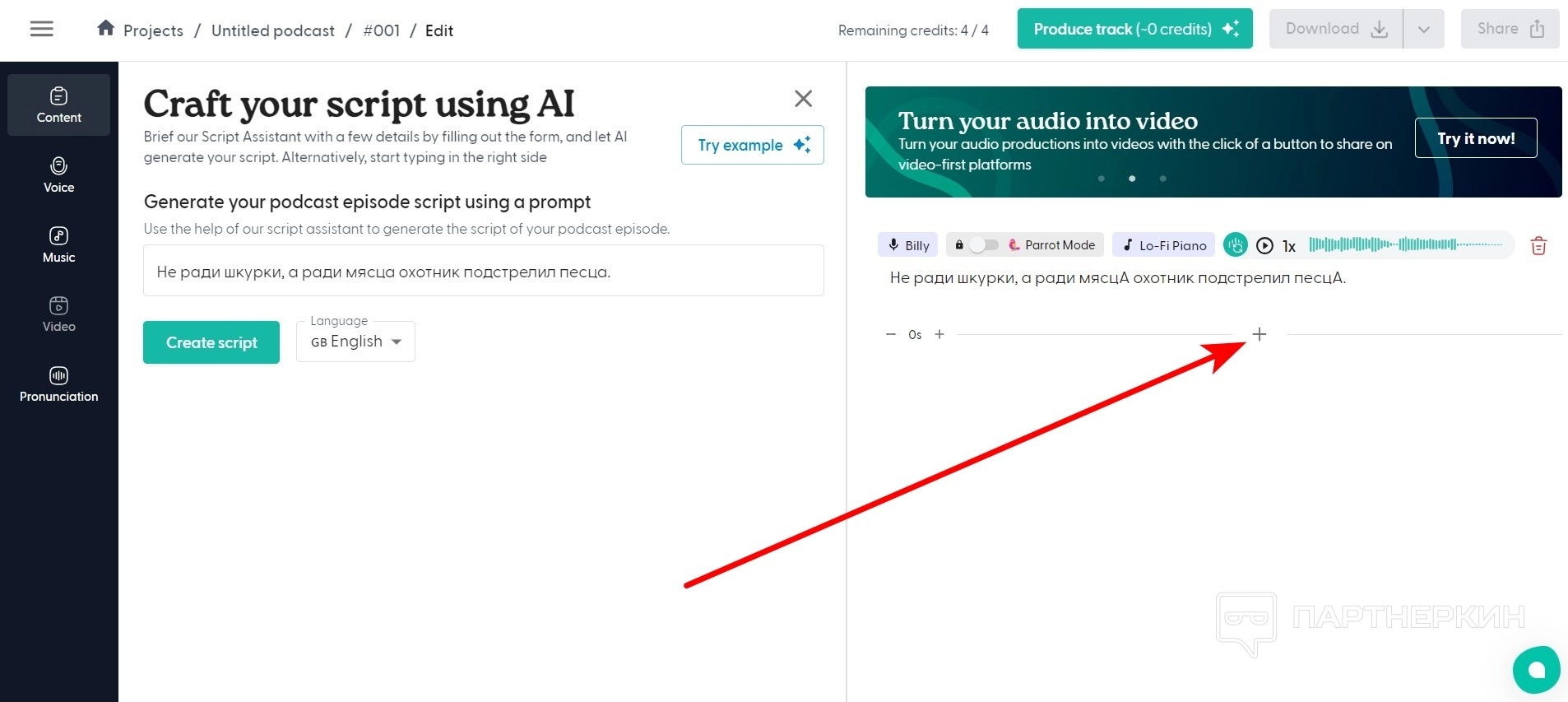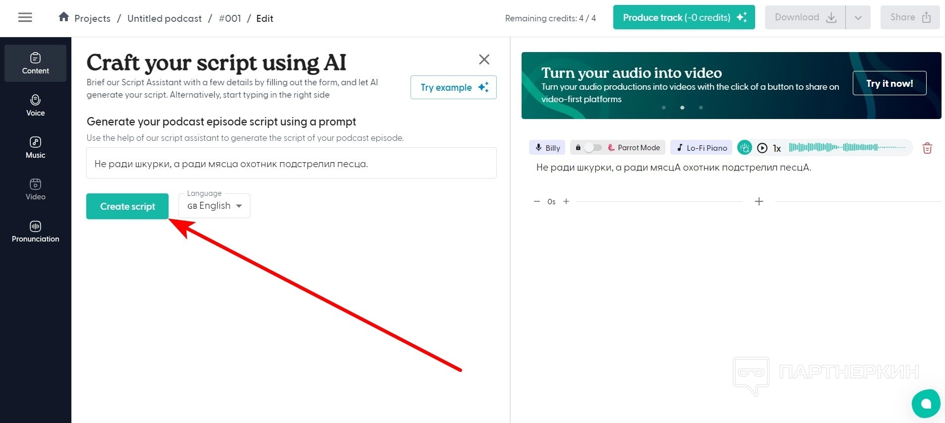 Функция создания сценариев с помощью искусственного интеллекта значительно упрощает процесс подкастинга, автоматически превращая простые пункты в полноценные сценарии. Это существенно экономит время и усилия создателей. Дополнительно,