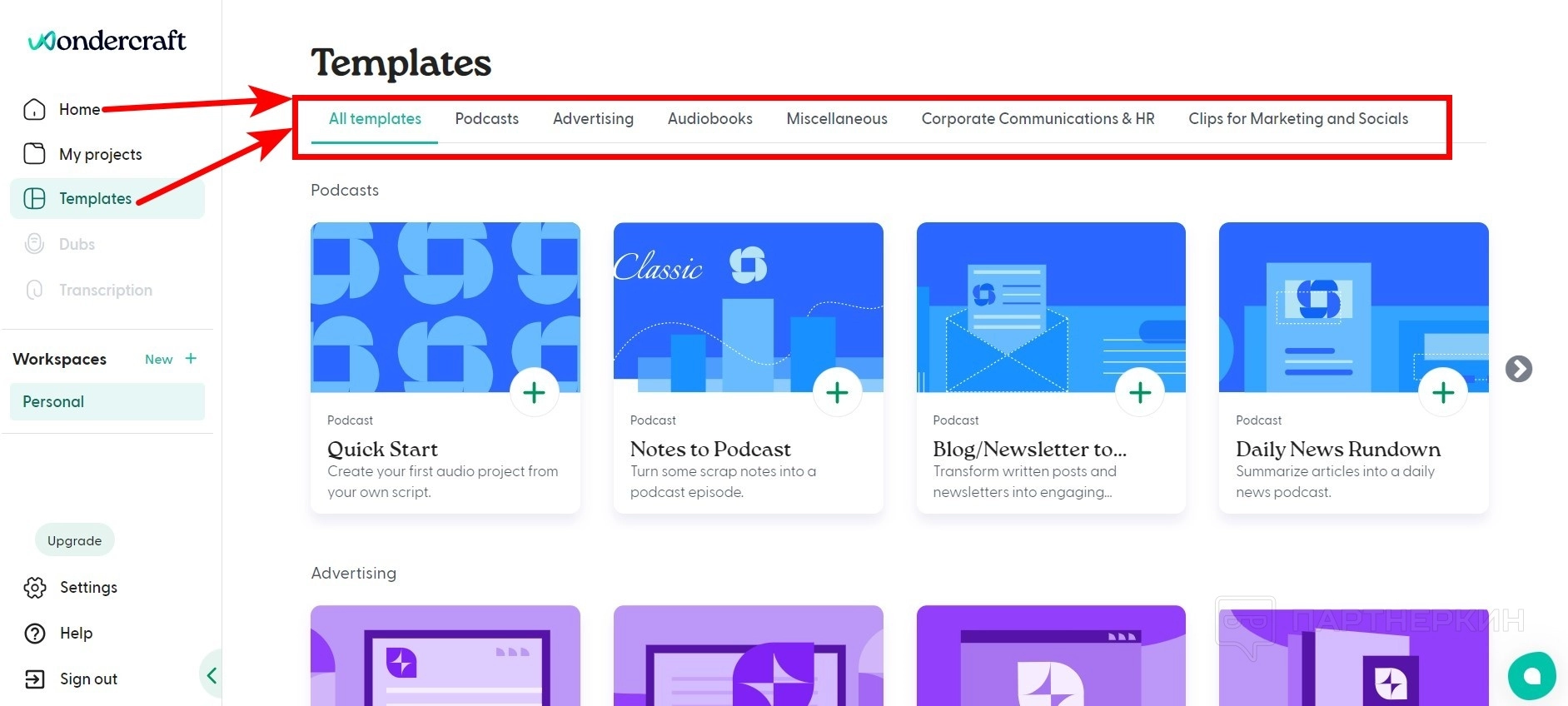 • Corporate communications & HR. Инструменты для создания контента компаний и корпораций. Тут есть шаблоны для создания подкаста специально для сотрудников, превращение email в рекламный аудиотекст и так далее.
