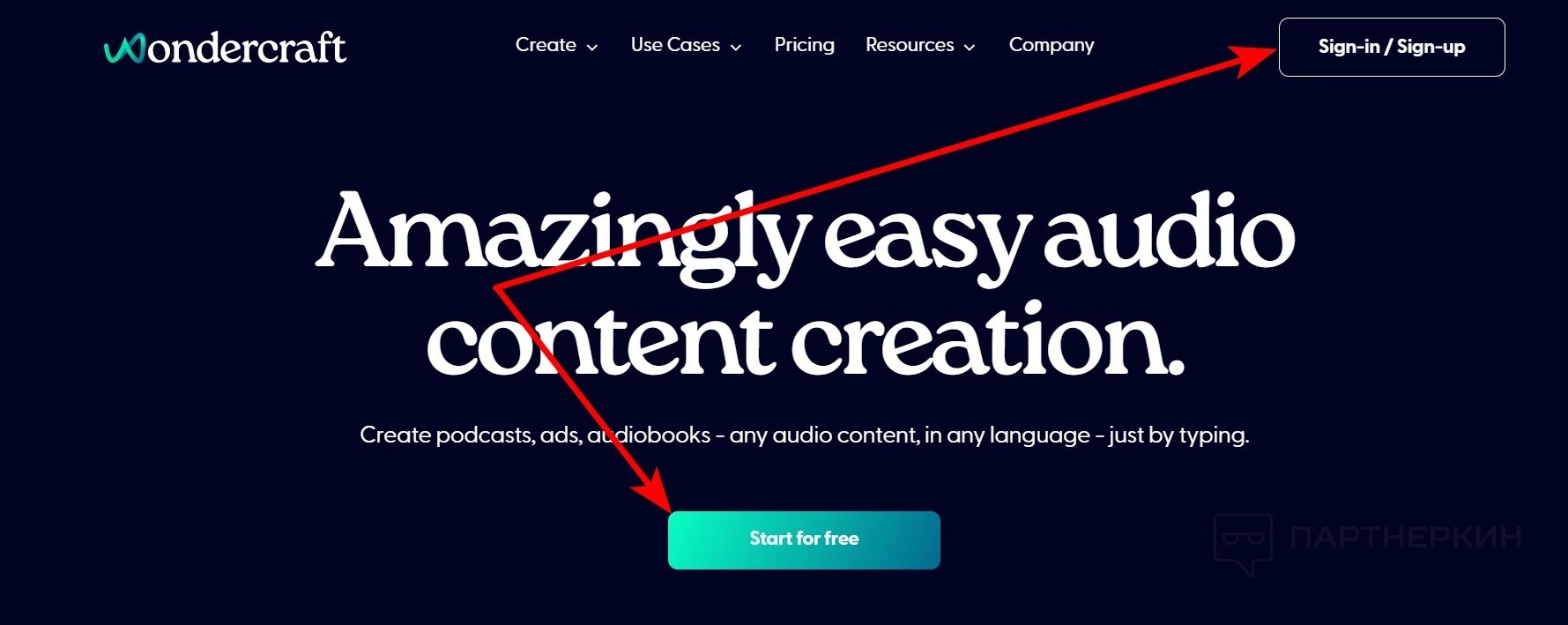1. На главной странице официального сайта выберите раздел Sign-in/Sign-up или нажмите на кнопку Start for free .