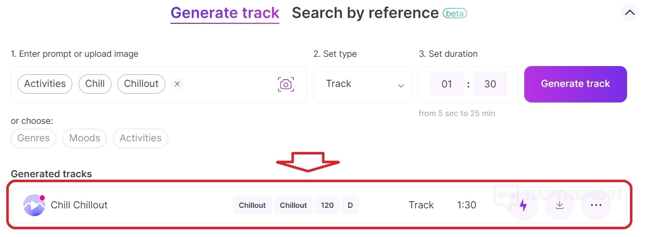Чтобы получить подходящую мелодию, нужно ввести запрос, промпт, например, указать, что нужна короткая ритмичная композиция для смешного ролика в TikTok. Также можно вставить референсную ссылку: алгоритмы проанализируют песню и найдут наилучшее соответствие среди базы треков. Далее потребуется установить продолжительность, доступная длина — от 5 секунд до 25 минут.