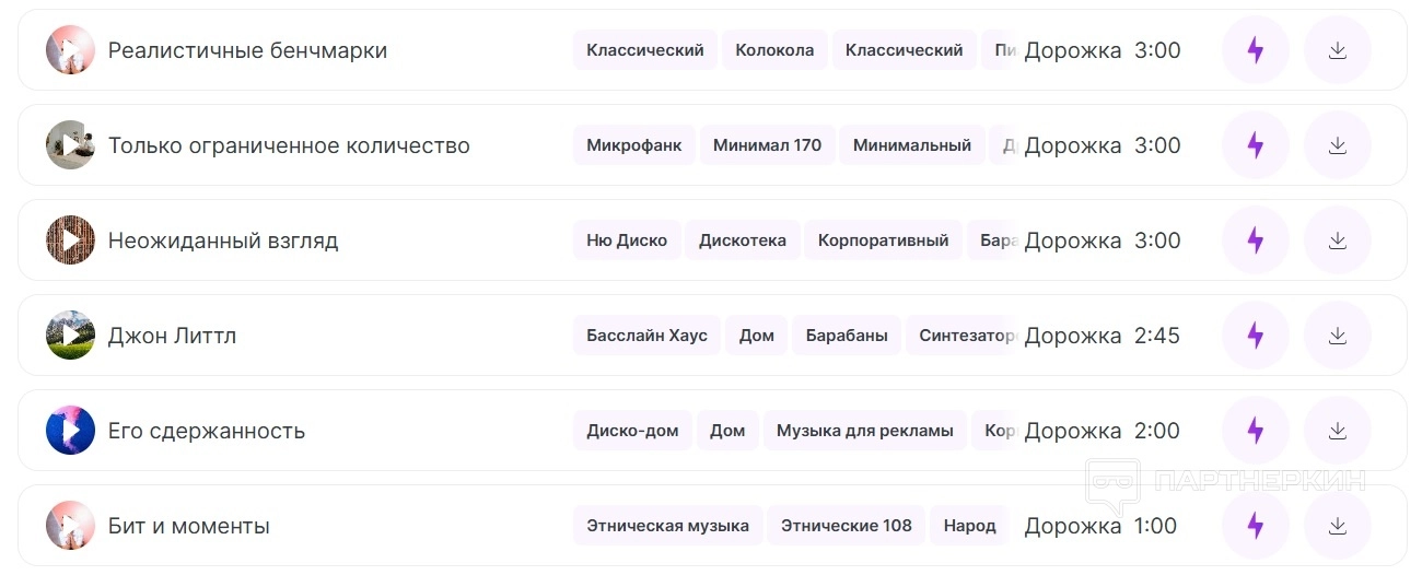 - Подбор мелодий, которые подойдут для любого проекта, в том числе возможно использование в личных, развлекательных целях. Например, можно подобрать музыку для отдыха, тренировок, учебы.