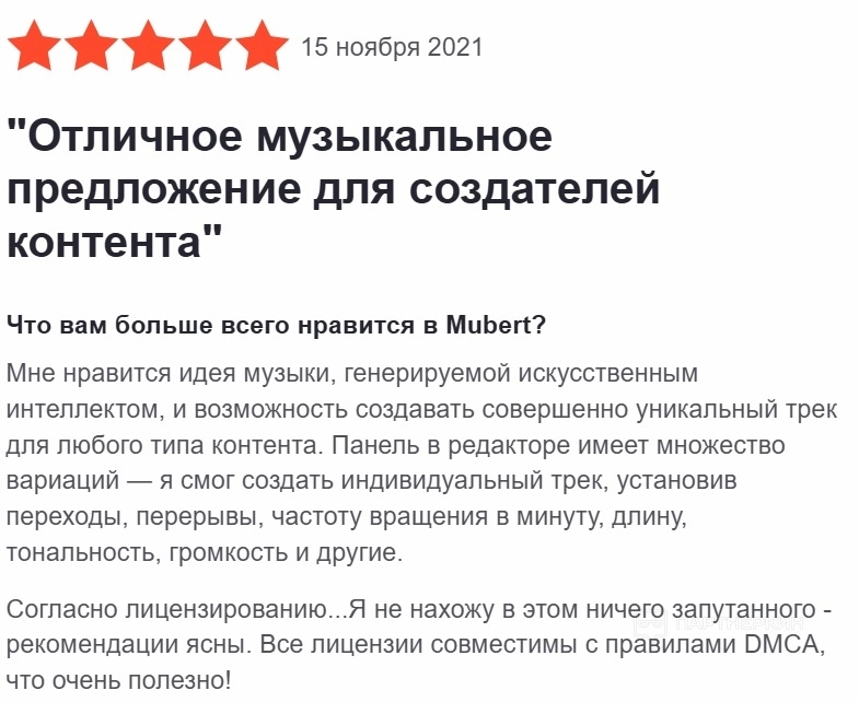 Также многие клиенты довольны возможностью создавать музыку для любого типа контента, большим количеством разнообразных настроек, жанров, стилей: