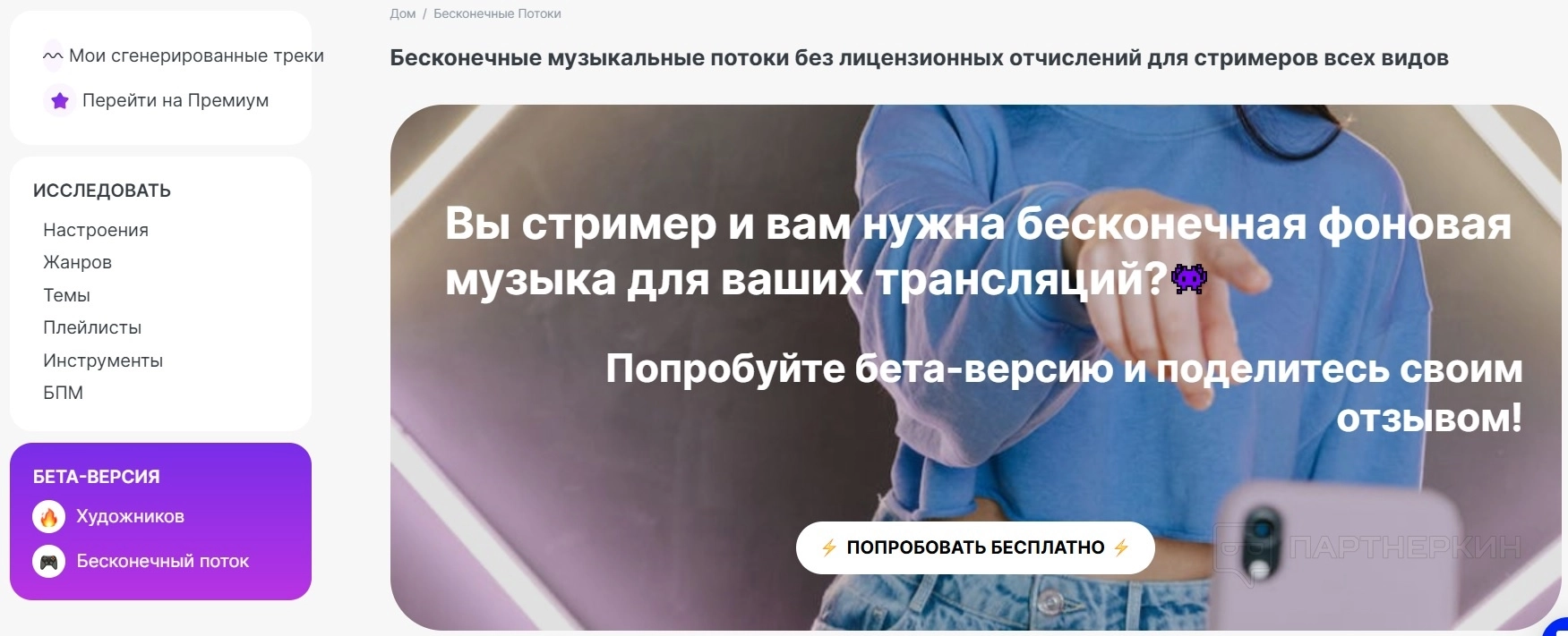 Зарегистрированные пользователи могут создавать плейлисты, добавлять потоки в избранное и даже сами обучать алгоритмы на своих «лайках» и «дизлайках». Это позволит получить максимальную отдачу от персонализированной генерации музыки.