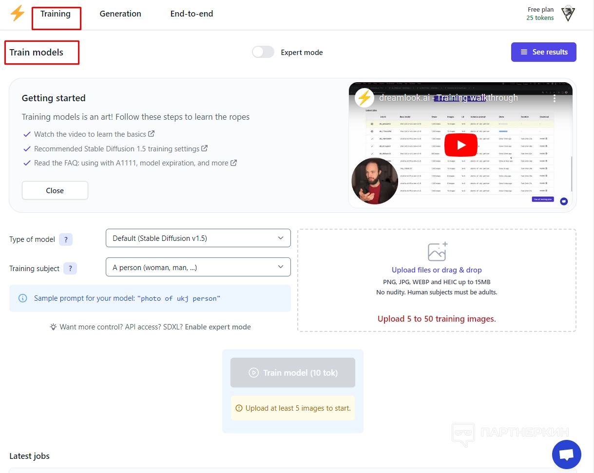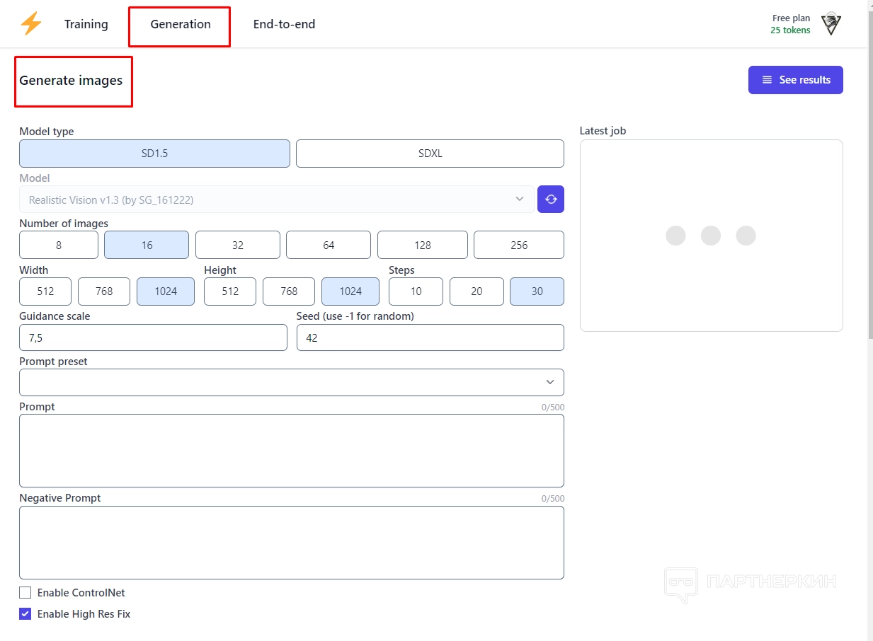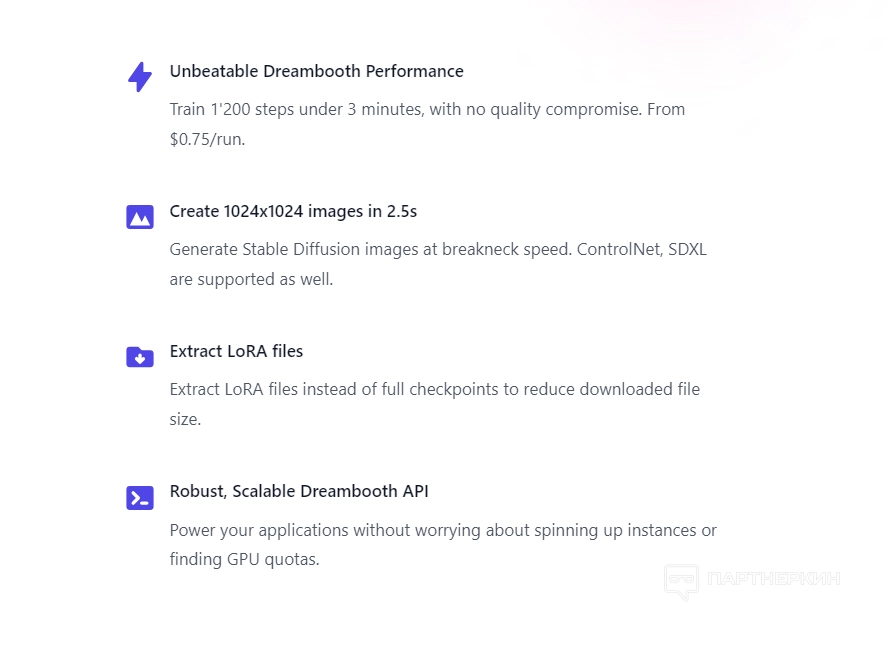 - Конфиденциальность данных. По умолчанию сервис хранит данные пользователей максимум 48 часов. По истечении этого срока все предоставленные обучающие изображения и полученные модели удаляются.