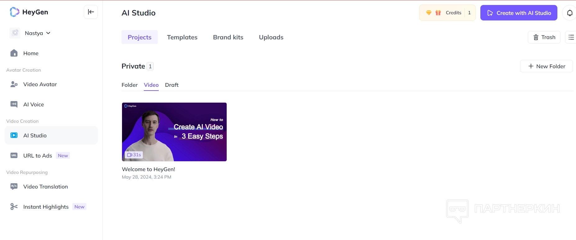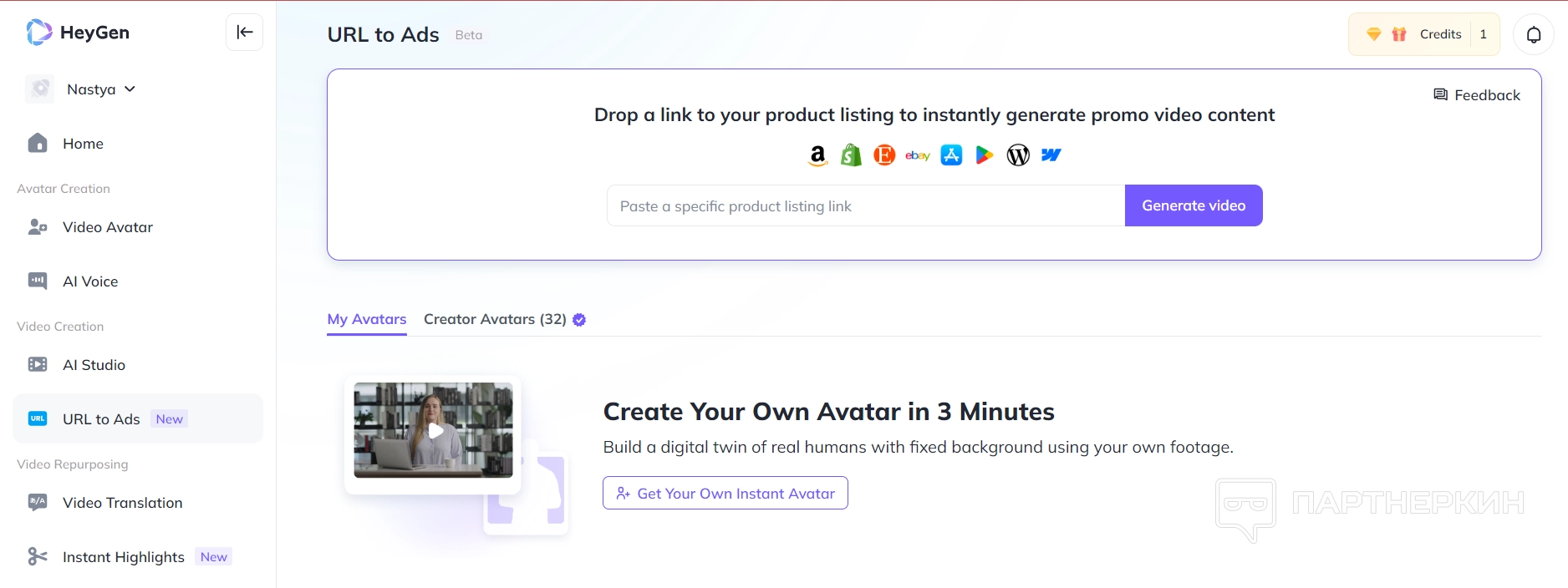 1 бесплатный кредит: позволяет пользователям протестировать платформу, создавая одно видео бесплатно. Это отличный способ ознакомиться с возможностями