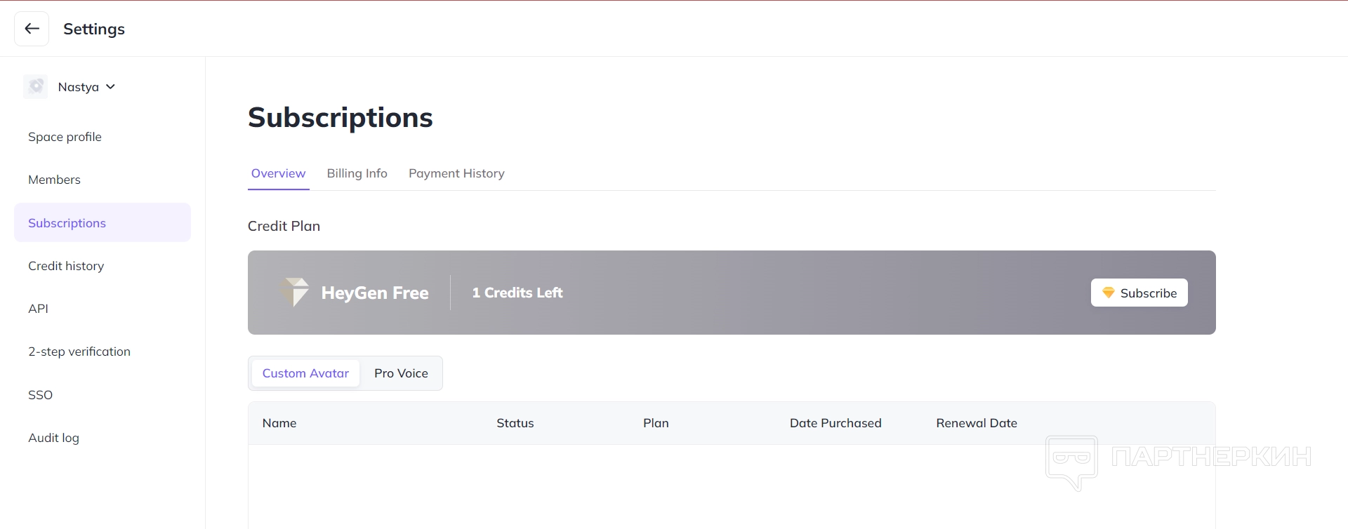В разделе «Подписка» вы управляете своим тарифным планом и платежами. Здесь можно просмотреть текущий тарифный план, узнать его стоимость и какие услуги в него включены. Вы можете обновить или изменить тарифный план в зависимости от ваших потребностей, либо отменить подписку, если услуги