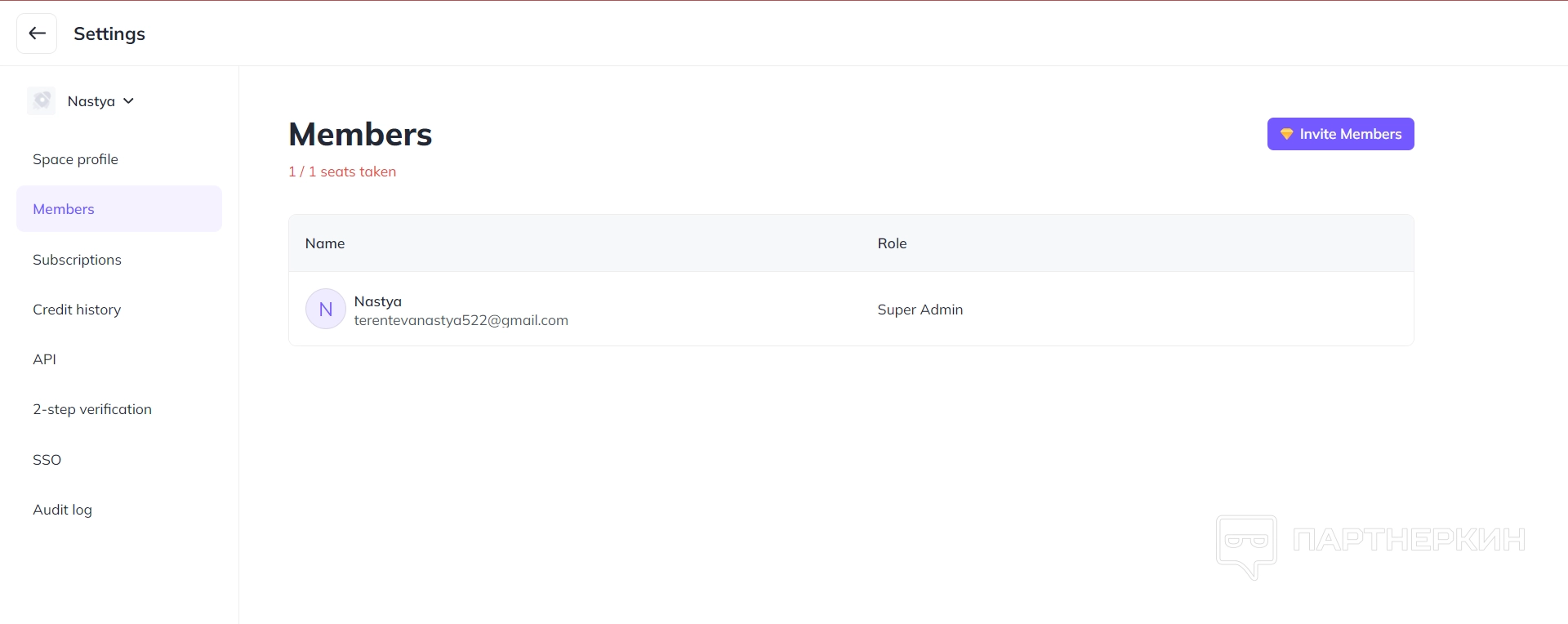 Раздел «Участники» предназначен для управления командой, что особенно полезно для коллективной работы над проектами. Вы можете приглашать новых пользователей в вашу команду, отправляя им приглашения по электронной почте. После присоединения участникам можно назначать различные роли, такие как администратор, редактор или зритель, и настраивать права доступа, чтобы контролировать, кто и какие действия может выполнять. Это обеспечивает гибкость и безопасность в работе с командой. Кроме того, вы можете отслеживать активность участников, что позволяет вам видеть, кто и что делает в проекте, обеспечивая прозрачность и контроль над процессами.